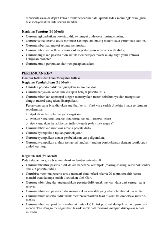 dipresentasikan di depan kelas. Untuk pencarian data, apabila tidak memungkinkan, guru