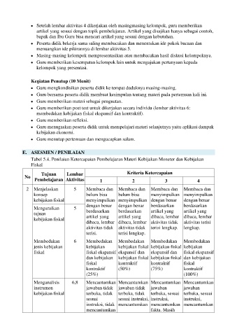 Tabel 5.4. Penilaian Ketercapaian Pembelajaran Materi Kebijakan Moneter dan Kebijakan