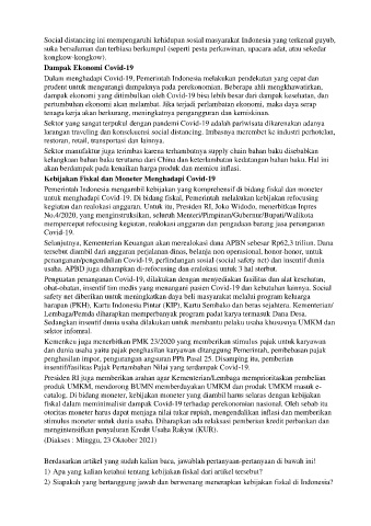 untuk menghadapi Covid-19. Di bidang fiskal, Pemerintah melakukan kebijakan refocusing