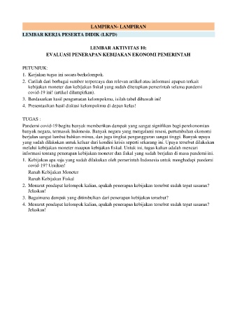 informasi tentang penerapan kebijakan moneter dan fiskal yang sudah berjalan di masa pandemi ini.