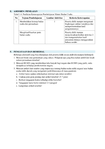 Tabel 1.4. Penilaian Ketercapaian Pembelajaran Materi Badan Usaha