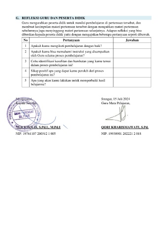G. REFLEKSI GURU DAN PESERTA DIDIK