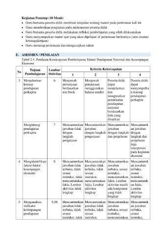 Tabel 2.4. Penilaian Ketercapaian Pembelajaran Materi Pendapatan Nasional dan Kesenjangan