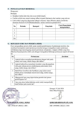 G. REFLEKSI GURU DAN PESERTA DIDIK