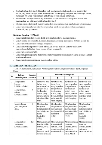Tabel 5.4. Penilaian Ketercapaian Pembelajaran Materi Kebijakan Moneter dan Kebijakan