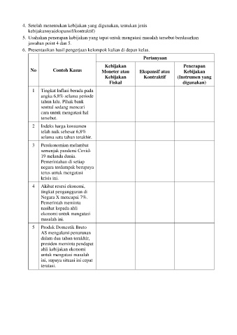 5. Usahakan penerapan kebijakan yang tepat untuk mengatasi masalah tersebut berdasarkan