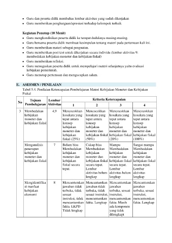Tabel 5.4. Penilaian Ketercapaian Pembelajaran Materi Kebijakan Moneter dan Kebijakan