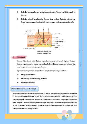5) Kelenjar keringat, berupa pembuluh panjang dari lapisan malpighi masuk ke