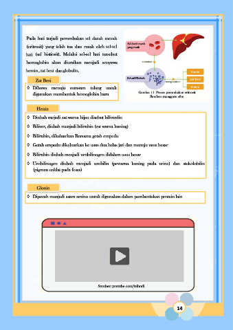 Biliver, diubah menjadi bilirubin (zat warna kuning)