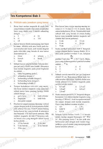 e-library SMAN 1 Pringgabaya 1/3 ke bawah d. 2I ke atas 10. Sebuah kawat beraus listrik 2 A berada