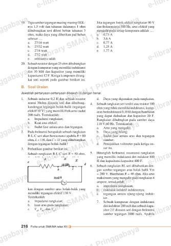 e-library SMAN 1 Pringgabaya kai seri seperti pada gambar berikut ini. aran berinduktansi 0,10 H dengan hambatan e-library SMAN 1 Pringgabaya