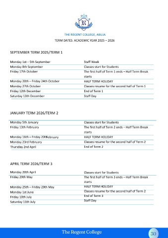 TERM DATES: ACADEMIC YEAR 2025 – 2026