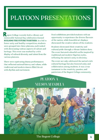 various platoons.                                        reflecting the nation’s unity in diversity.