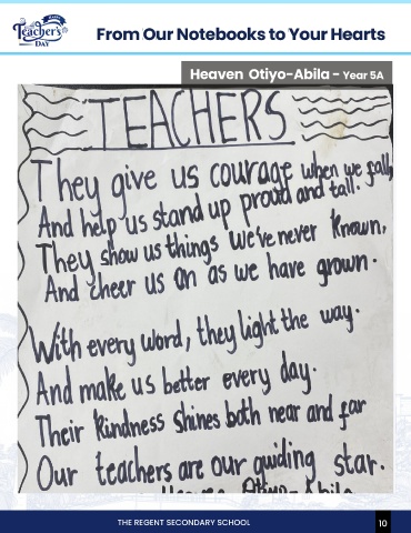From Our Notebooks to Your Hearts Heaven Otiyo-Abila - Year 5A Olivia Rose - Year 6S CLICK HERE TO WATCH THE REGENT SECONDARY SCHOOL 10 10 THE REGENT SECONDARY SCHOOL 11