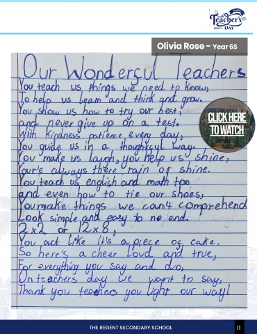 From Our Notebooks to Your Hearts Heaven Otiyo-Abila - Year 5A Olivia Rose - Year 6S CLICK HERE TO WATCH THE REGENT SECONDARY SCHOOL 10 10 THE REGENT SECONDARY SCHOOL 11