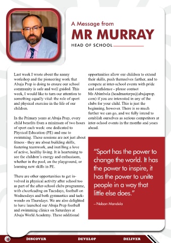 Physical Education (PE) and one to This quote from Nelson Mandela typifies some of our Abuja Prep values - that