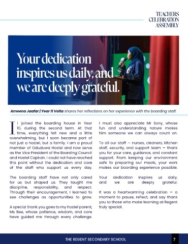 Ameena Jaafar | Year 11 Volta shares her reflections on her experience with the boarding staff.