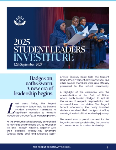 its 15th Head Boy and Head Girl, Isa Abubakar of a new chapter in student leadership.
