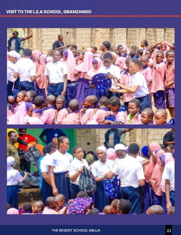 VISIT TO THE L.E.A SCHOOL, GBANZANGO DISTRIBUTION OF GIFT ITEMS TO THE STUDENTS THE REGENT SCHOOL ABUJA 22 THE REGENT SCHOOL ABUJA 23 22