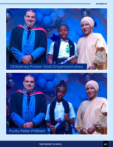 PRESENTATION OF We Made It! CERTIFICATES Chukwudubem Daroon Okonkwo Chikamso Praise-God Onyemachukwu Abubakar Olatundun Purity Peter Philbert THE REGENT SCHOOL 44 THE REGENT SCHOOL 45 44