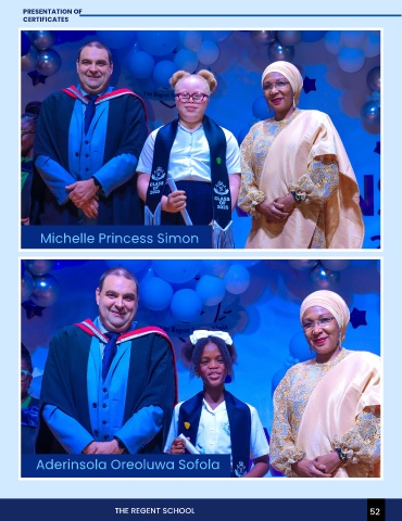 PRESENTATION OF We Made It! CERTIFICATES Michelle Princess Simon Nadiya Nasiru Sule Aderinsola Oreoluwa Sofola Pamela Rimo Yakubu THE REGENT SCHOOL 52 THE REGENT SCHOOL 53 52
