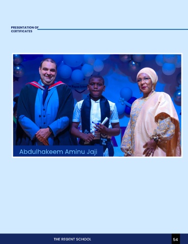 PRESENTATION OF We Made It! CERTIFICATES Abdulhakeem Aminu Jaji Abubakar Sadiq Kabiru Kamba THE REGENT SCHOOL 54 THE REGENT SCHOOL 55 54