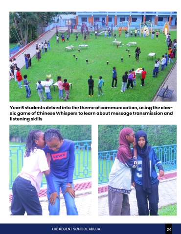 Year 6 students delved into the theme of communication, using the clas- sic game of Chinese Whispers to learn about message transmission and listening skills THE REGENT SCHOOL ABUJA 24 24