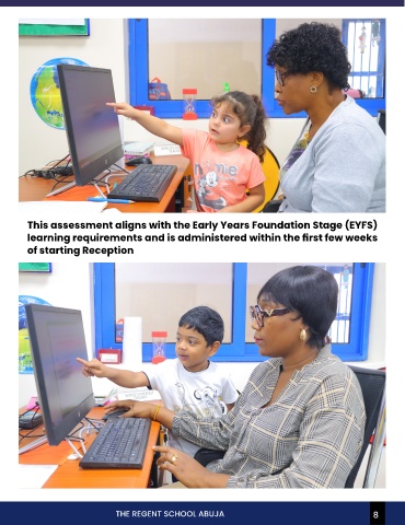 This assessment aligns with the Early Years Foundation Stage (EYFS) learning requirements and is administered within the first few weeks of starting Reception THE REGENT SCHOOL ABUJA 8 8