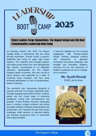 Camp Director, and supported by a team of Mr. Ayadi Olusoji