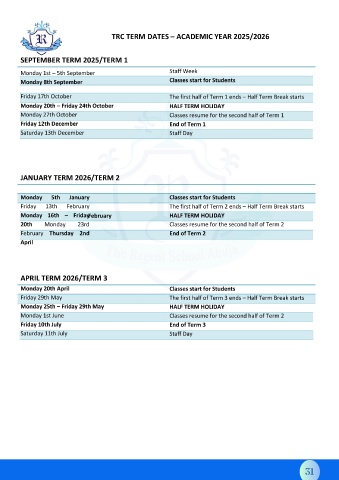 TRC TERM DATES – ACADEMIC YEAR 2025/2026