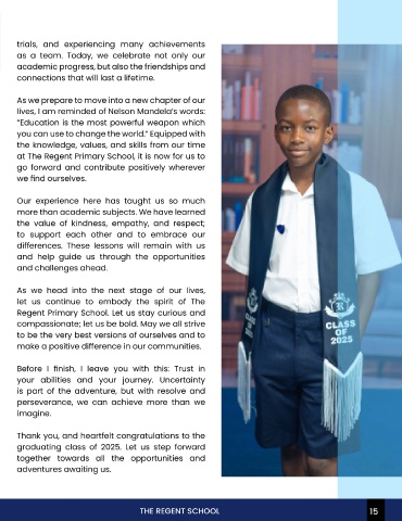 as the Head Boy of The Regent Primary the knowledge, values, and skills from our time