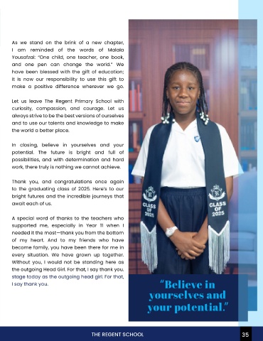 beginnings. As the Head Girl of The Regent Let us leave The Regent Primary School with
