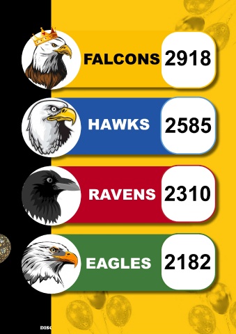Points House Points FALCONS 2918 House winner for the session winner for the session HAWKS 2585 RAVENS 2310 EAGLES 2182 falcons falcons DISCOVER DEVELOP DELIVER DISCOVER DEVELOP DELIVER