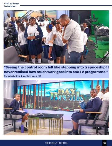Visit to Trust Visit to Trust Television Television “Seeing the control room felt like stepping into a spaceship! I never realised how much work goes into one TV programme.” By: Abubakar Almahdi Year 6R THE REGENT SCHOOL 18 18 THE REGENT SCHOOL 19