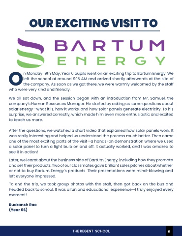 n Monday 19th May, Year 6 pupils went on an exciting trip to Bartum Energy. We