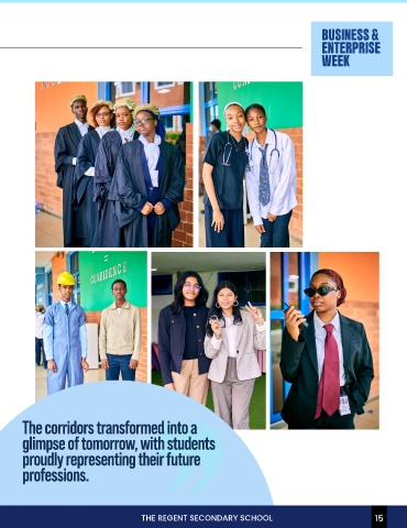 BUSINESS & ENTERPRISE WEEK The corridors transformed into a glimpse of tomorrow, with students proudly representing their future professions. THE REGENT SECONDARY SCHOOL 15