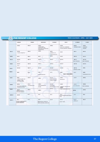 THE REGENT COLLEGE TERM 3 CALENDAR / APRIL - JULY 2025