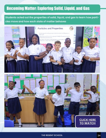 Students acted out the properties of solid, liquid, and gas to learn how parti-                                                                                               from The Regent School was the im-