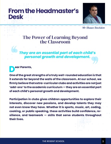 Headmaster’s Desk From the Principal’s They are an essential part of each child’s