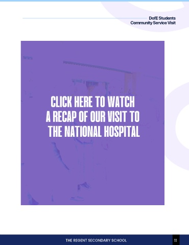 DofE Students Community Service Visit CLICK HERE TO WATCH A RECAP OF OUR VISIT TO THE NATIONAL HOSPITAL THE REGENT SECONDARY SCHOOL 11