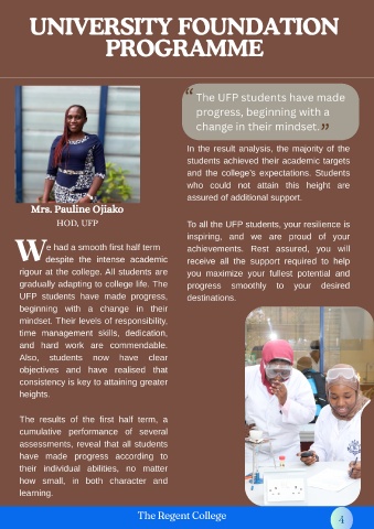 HOD, UFP                                  To all the UFP students, your resilience is