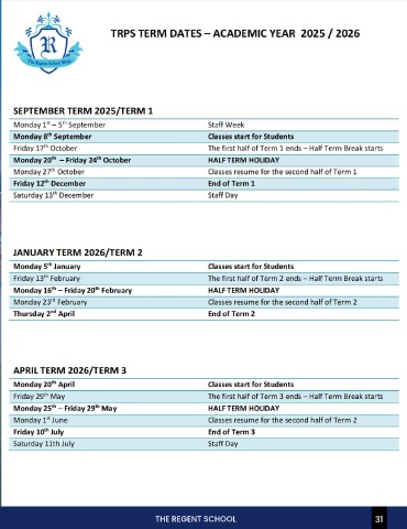 Writing Workshop for Parents: Primary Years 18th Year 5 Trip 19th Year 6 Class Assembly 21st Year 6 Horizons Lecture 21st Clubs End 25th THE REGENT SCHOOL 30 THE REGENT SCHOOL 31 30