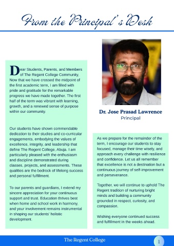 To our parents and guardians, I extend my                  Regent tradition of nurturing bright