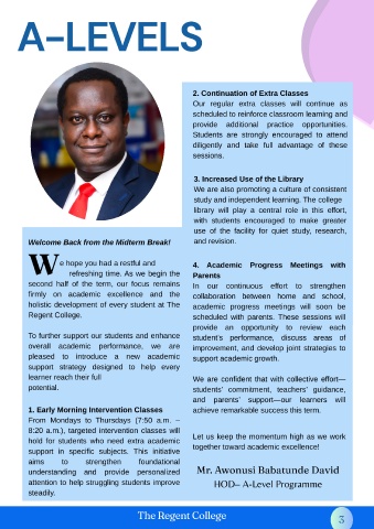 attention to help struggling students improve HOD– A-Level Programme