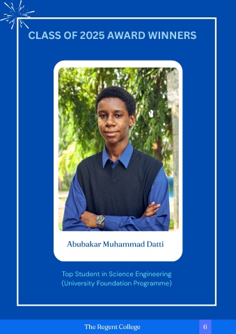 CLASS OF 2025 AWARD WINNERS Abubakar Muhammad Datti Top Student in Science Engineering (University Foundation Programme) The Regent College 6