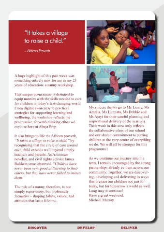 provide a compass for all that we do here in equip nannies with the skills needed to care