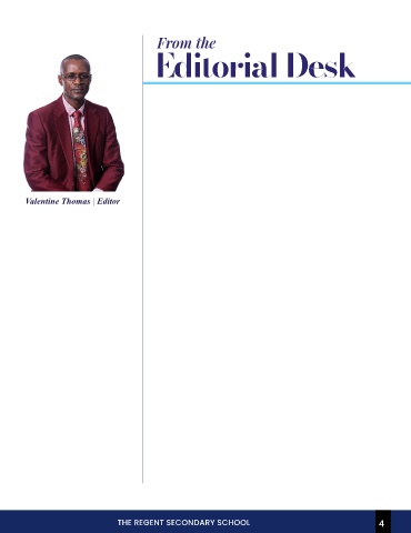 From the Editorial Desk Valentine Thomas | Editor THE REGENT SECONDARY SCHOOL 4 4