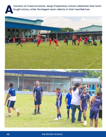 moment of mixed emotions: Abuja Preparatory School celebrates their hard- A fought victory, while The Regent team reflects on their heartfelt loss. 48 THE REGENT SCHOOL 48 THE REGENT SCHOOL 49