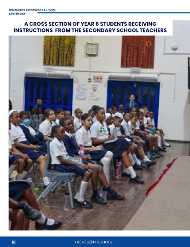 THE REGENT SECONDARY SCHOOL THE REGENT SECONDARY SCHOOL TASTER DAY TASTER DAY A CROSS SECTION OF YEAR 6 STUDENTS RECEIVING INSTRUCTIONS FROM THE SECONDARY SCHOOL TEACHERS 18 THE REGENT SCHOOL 18 THE REGENT SCHOOL 19