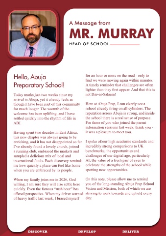 HEAD OF SCHOOL To be a school that fosters outstanding, we discover, develop and deliver. A